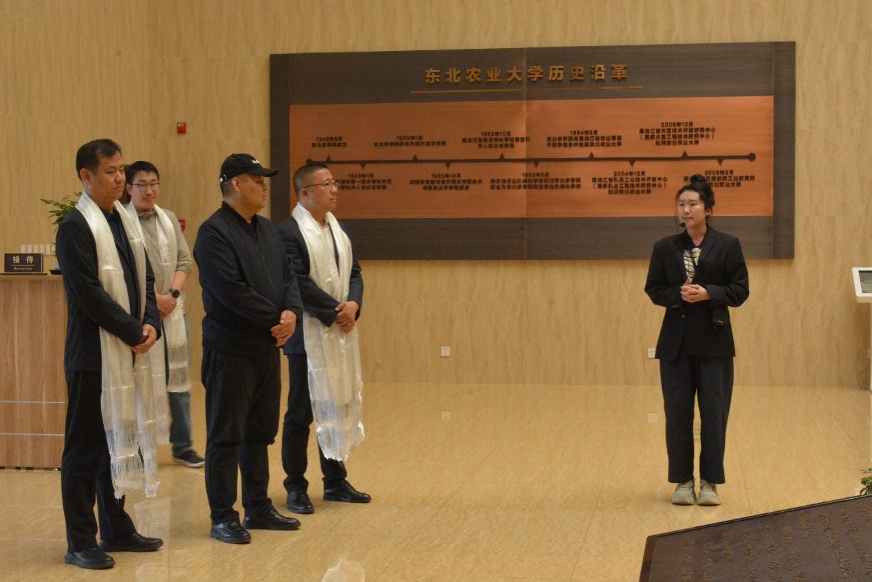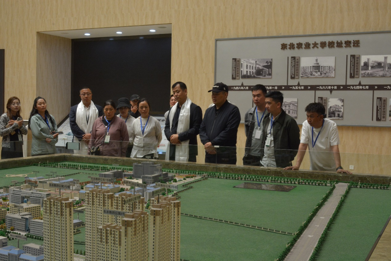 于志刚一行参观了东北农业大学校史馆,朱志猛代表学校向日喀则市的各位领导及基层农技人员表示热烈欢迎,对黑龙江省第八批援藏工作队致以崇高敬意,对日喀则市及工作队给予学校的信任和认可表示衷心感谢。他在考察过程中表示,东北农业大学与黑龙江省援藏工作队渊源深厚,联络紧密,早在2022年,第七批援藏工作队就与学校建立了联系并提出调研考察意向,但受疫情因素影响最终未能成行。今年1月,黑龙江省第八批援藏工作队临时党委书记、日喀则市委副书记、常务副市长来永见一行还特地到访东北农业大学,与学校领导进行了交流会晤,对双方的下一阶段合作谋篇布局。本次考察学习活动是对省委科技援藏、智力援藏、人才援藏、产业援藏精神的重要实践,也是双方进一步深化合作的积极探索。未来东北农业大学将一如既往地关注、支持援藏工作,充分发挥学校科技、智力、人才优势,助力日喀则市农牧业产业发展。