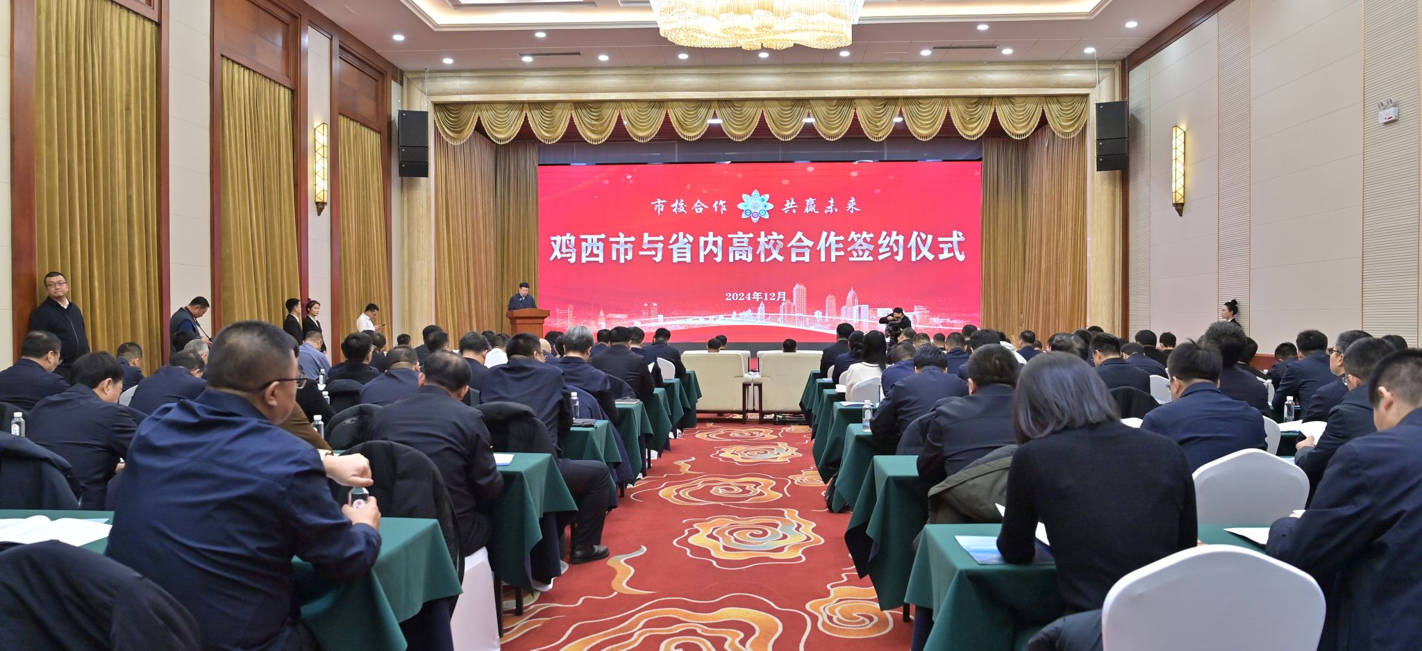 鲁长友代表市委、市政府向省委教育工委、省委组织部和8所省内高校各位领导的到来表示诚挚欢迎,向长期以来对鸡西高质量发展给与的关心、支持和帮助表示衷心感谢。他表示,鸡西正处于转型发展的关键时期,聚力打造龙江“智谷”“碳谷”,迫切需要智力支持、人才支撑。他希望,鸡西市与各高校共谋智库建设之新策,用智慧之光点亮鸡西大地,用科创之力点燃发展激情。共商科技创新之新径,发展以高技术、高效能、高质量为特征的生产力。共闯产业振兴之新路,合力培育和发展新质生产力。共开人才引育之新局,开创人才辈出、人尽其才的良好局面。共绘社会发展之新篇,助力幸福鸡西建设。鸡西市将以最大诚意落实协议,以最高效率促进合作,以最好服务强化保障,用“双向奔赴”创造美好未来,用“双向赋能”谱写精彩华章。