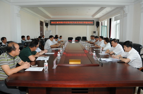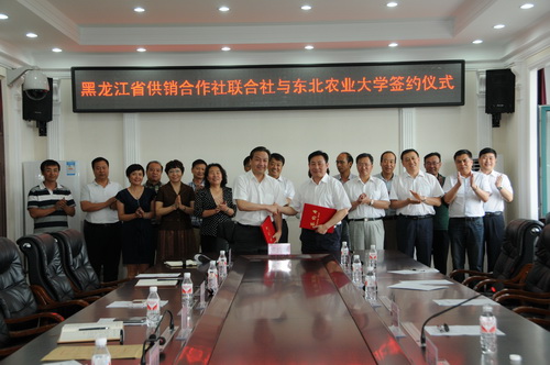 7月1日下午,黑龙江省供销社与东北农业大学战略合作签约仪式在我校举行。省供销社党组书记、理事会主任王德胜,党组成员、纪检组长陈丽娜,社有资产管理委员会副主任孙正华、隋国圣,经济发展处处长张喜祥,办公室主任姜树春,我校党委书记冯晓,校长包军,副校长郑秋鹛,新农村发展研究院执行院长吴永清,科学技术处处长焦光纯,动物科学技术学院党委书记高越山,继续教育中心党委书记王立,农学院院长邹德堂,园艺学院院长栾非时,电气与信息学院院长苏中滨,经济管理学院副院长庞金波,工程学院副院长周福军,食品学院副院长李晓东,资源与环境学院副院长闫雷以及相关职能部处工作人员出席仪式。仪式由郑秋鹛主持。