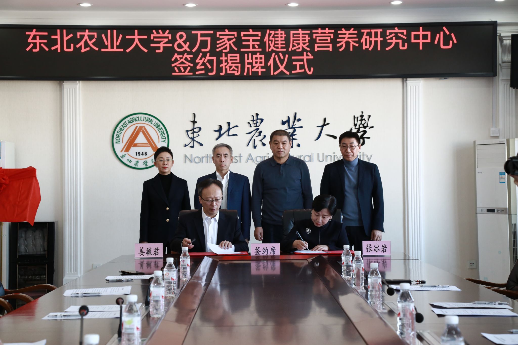 3月6日下午,东北农业大学与万家宝鲜牛奶集团共建“东北农业大学&万家宝健康营养研究中心”签约揭牌仪式在我校举行。万家宝鲜牛奶集团总经理柴宝全、副总经理兼科创有限公司总经理张冰岩、副总经理韩俊,我校副校长孙占峰,食品学院党委书记潘俊波、院长姜毓君、副院长刁铁军,社会合作与成果转化中心(新农村发展研究院)党总支书记王伟峰参加了签约揭牌仪式。签约揭牌仪式由王伟峰主持。
