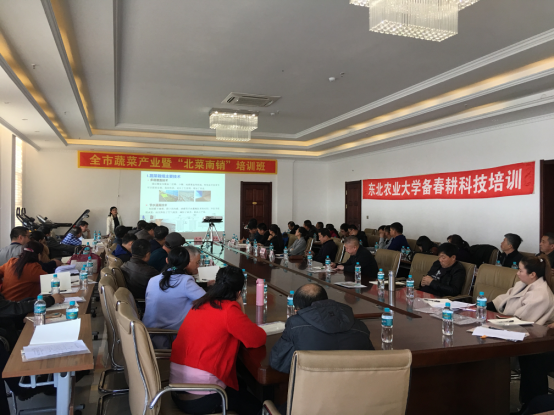 为深入贯彻2017年中央一号文件和我省农业农村工作会议精神,积极推进种植业结构调整,促进齐齐哈尔市蔬菜产业健康快速发展。3月16—17日,我校组织蔬菜专家赴齐齐哈尔梅里斯区举办了为期2天的“东北农业大学备春耕暨北菜南销科技培训班”,培训了齐齐哈尔市九县七区农业局、农业技术推广中心、农业合作社、种植大户等科技人员及农民100人。