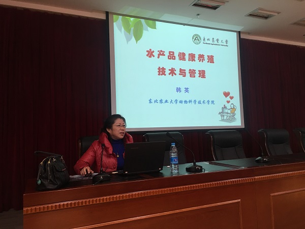 | 韩英教授为学员讲解水产品健康养殖技术与管理 |