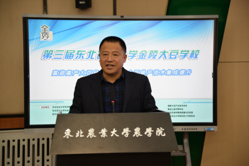 开班式上,孙占峰代表学校致辞,对出席开班式的各合作单位表达了感谢,对全体学员到来表示欢迎。他强调,黑龙江省作为我国最大的大豆生产供应基地,在种植面积、总产量等方面均居于全国领先位置,在保证粮油安全,促进大豆生产经济效益上发挥了重要的作用。第三届“金陵”大豆学校由东北农业大学农学院、新农村发展研究院和哈尔滨市科协共同主办,邀请到了由国内顶尖级专家组成的教师团队,希望各位学员能够学有所成。