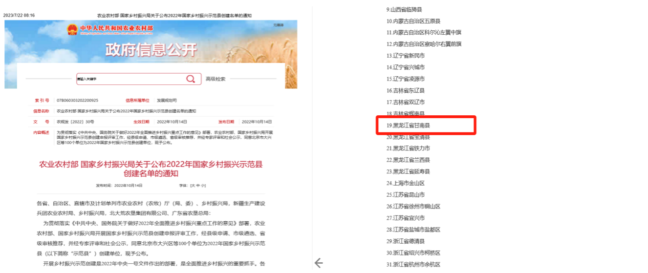 甘南县获批全国乡村振兴示范县和全国农业科技现代化先行县